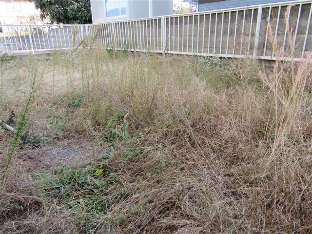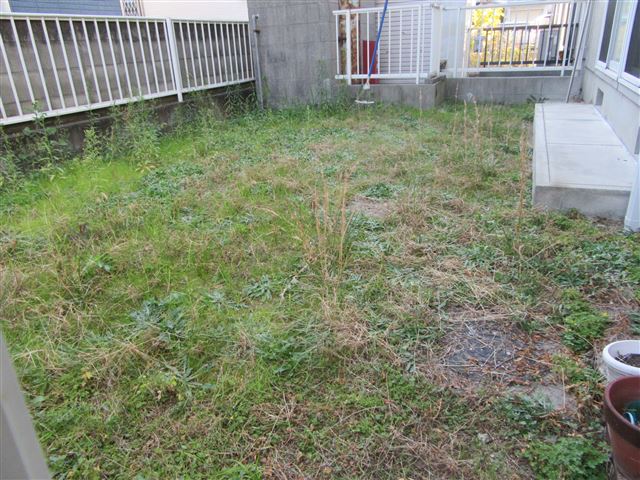 前庭がありますが、夫婦とも仕事をしていると庭いじりの時間がないのか草茫々です