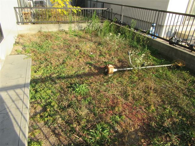 アパートの庭の草刈りに行きました
