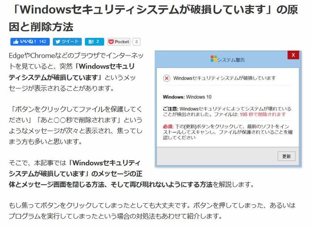 「Windowsセキュリティシステムが破損しています」の原因と削除方法