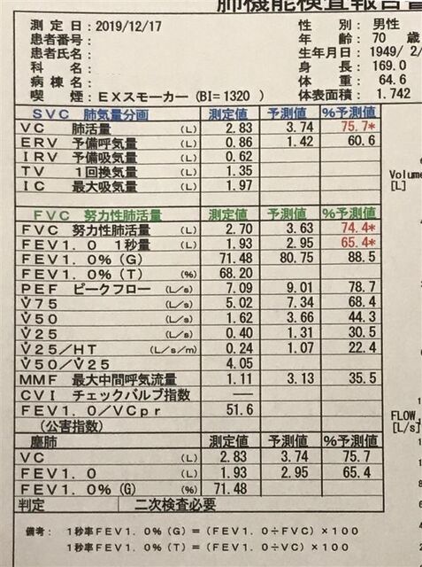 肺活量は予測値の75%ほどと低いです