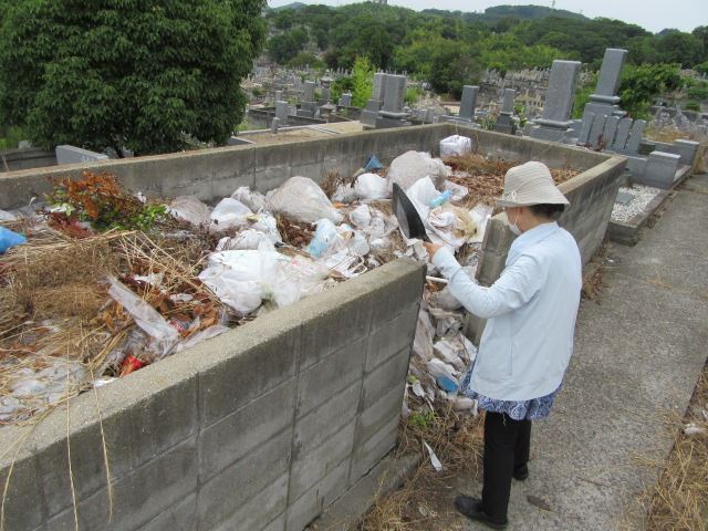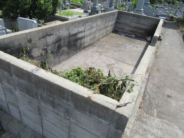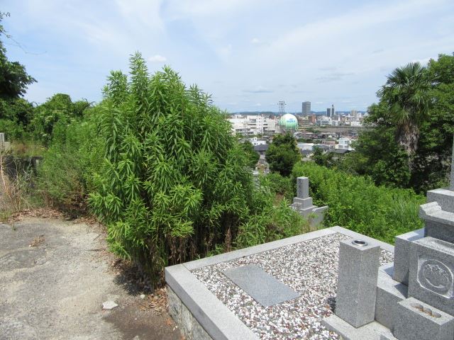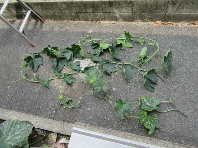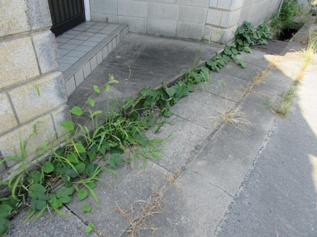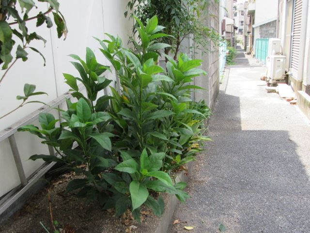 路地の通行のじゃまになるので、脚立を持ってきて上の方でカット