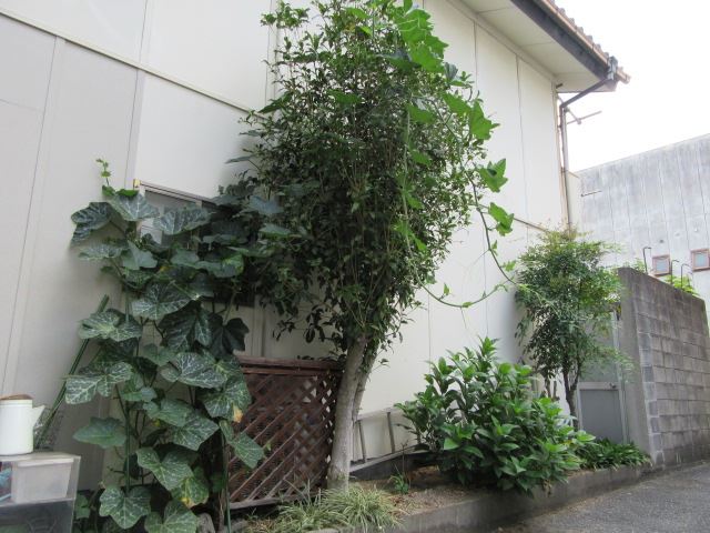 金木犀のてっぺんまで伸びて垂れ下がってきました