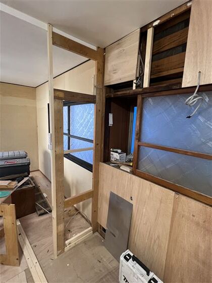 キッチン流し、ガス台、換気扇カバー、吊戸棚の下地ができにくい です