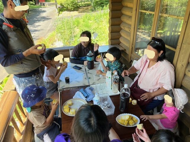 デッキで採れたてトウモロコシをごちそうしました