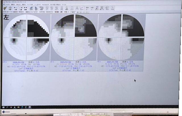 左目は緑内障の関係で真ん中から右上方向が見えていません