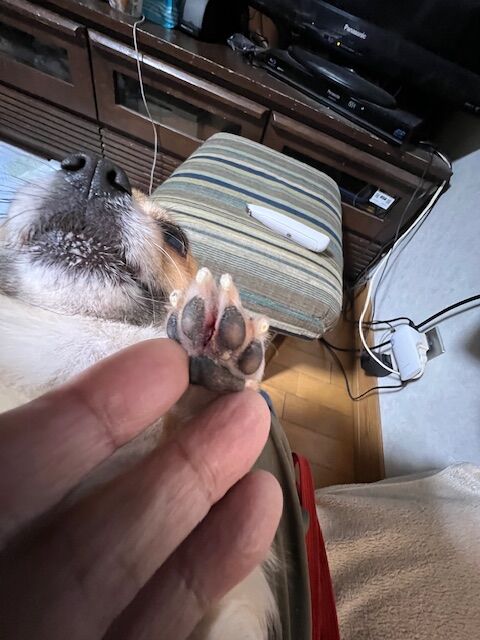 蒜山のデッキでチャチャの足毛切りをしました
